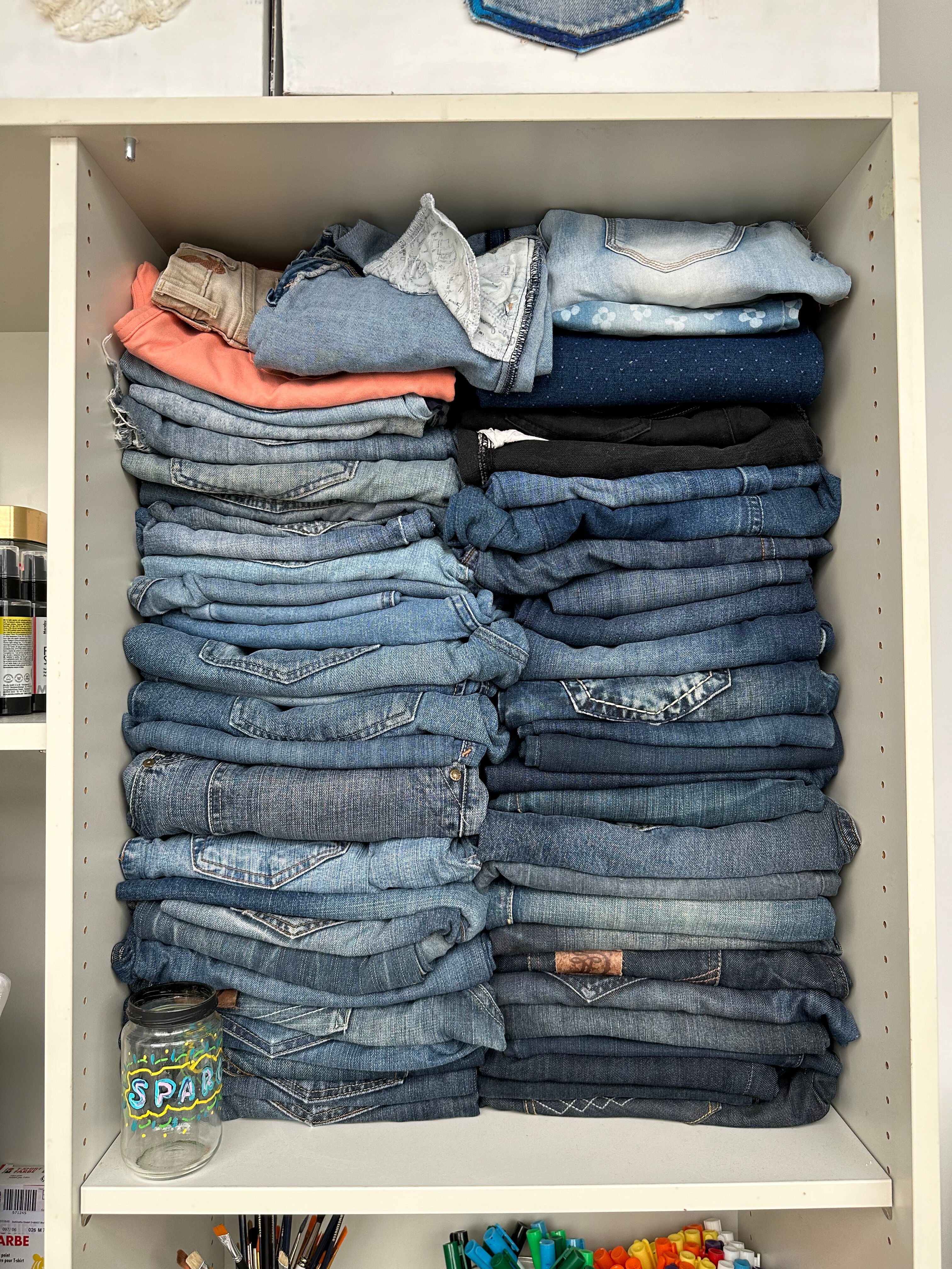 „Mit dem Raum hier ist eigentlich so ein kleiner Traum von mir in Erfüllung gegangen. Vorher musste ich mir den Platz mit der Wäscherei der Schule teilen. Hier ist es ruhiger und die Schüler*innen haben Raum für ihre Kreativität“, erzählt sie. Die Raum bietet Platz für bis zu fünf Nähplätze, einen Kreativbereich und eine Chillout-Ecke. An den Wänden stehen zahlreiche Regale und Schränke, in denen sich gut sortiert allerlei Materialien stapeln, bunte Stoffe, Nähutensilien, Textilfarben und vieles mehr.