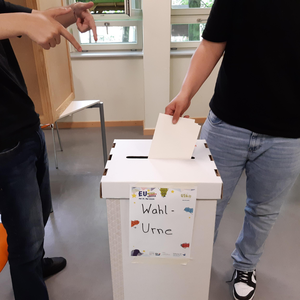 An der Schule am Schloss fand am Freitag, den 31. Mai, eine U16-Wahl statt. Alle Schüler*innen konnten klassenweise in der Aula einmal durchspielen, was es heißt, wählen zu gehen. Mit Wahlkabinen, Wählerlisten, Wahlurnen und Wahlhelfer*innen.