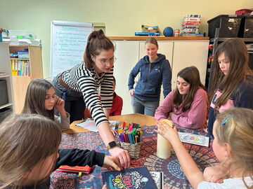 „Entstanden ist die Idee zum Mädchen*Treff, weil immer wieder Mädchen zu uns zur Konfliktmediation kamen, und wir das Gefühl hatten, dass ihnen ein fester Anlaufpunkt für ihre Themen gut tun würde. Mädchen „mit Sternchen“, weil wir grundsätzlich allen Kindern, die sich dieser Gruppe zugehörig fühlen, diesen Raum bieten möchten“, erklärt Maria Buchhorn. „Mittlerweile kommen rund zehn Mädchen regelmäßig in unseren Treff, im Schnitt sind sechs bis sieben Schülerinnen an einem Nachmittag da. Hier können sie ihren Nachmittag gemeinsam gestalten“, ergänzt Lilian Scherbarth.